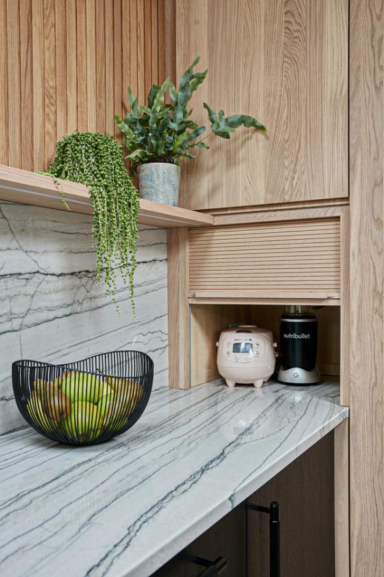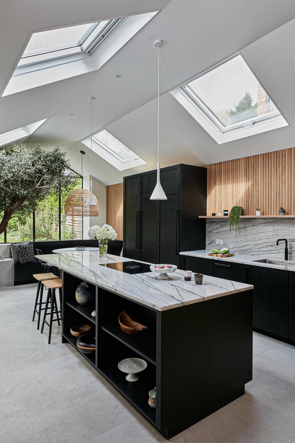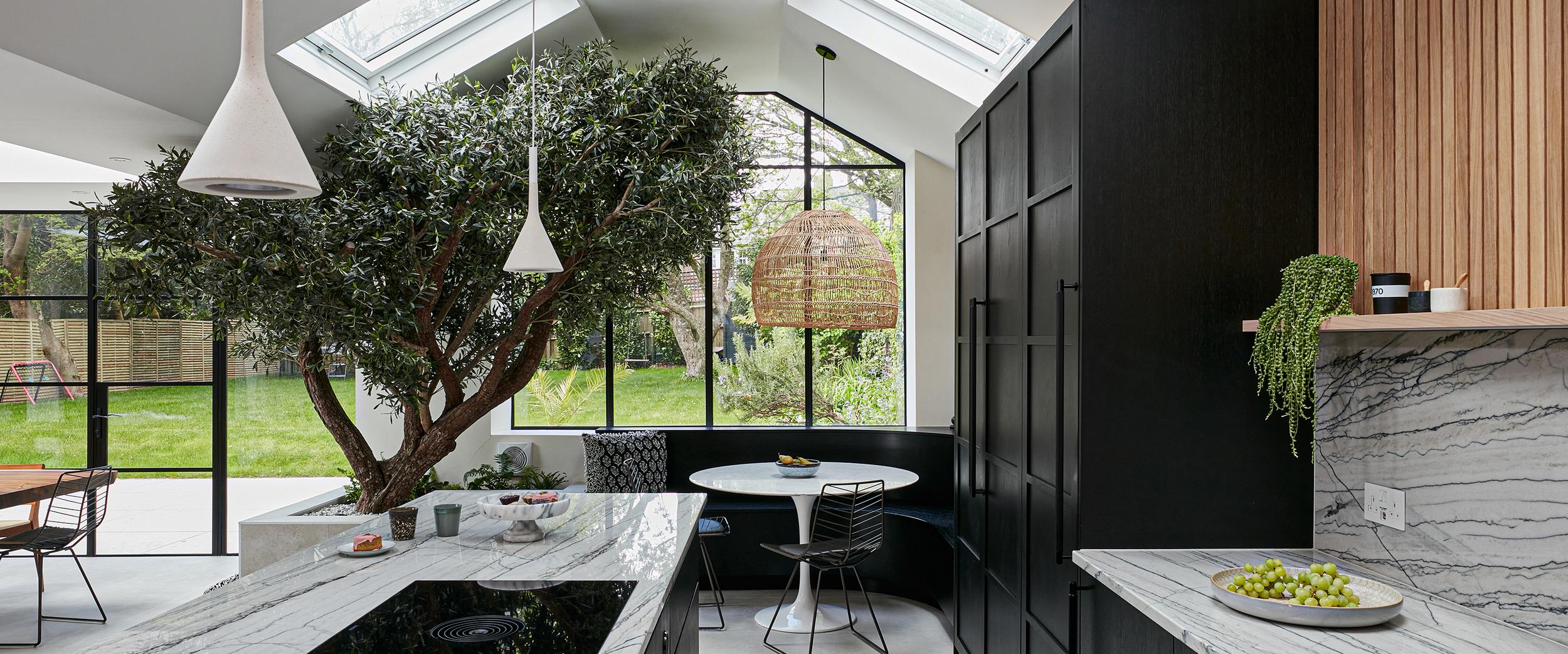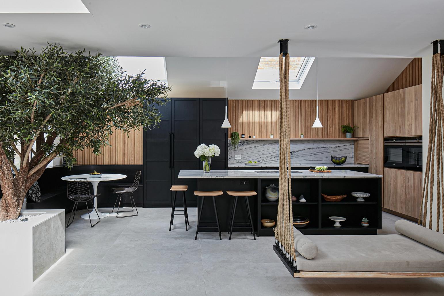 An award-winning kitchen with a family-friendly layout that celebrates the owners' Sri Lankan and Singaporean heritage and their enjoyment of living close to nature.